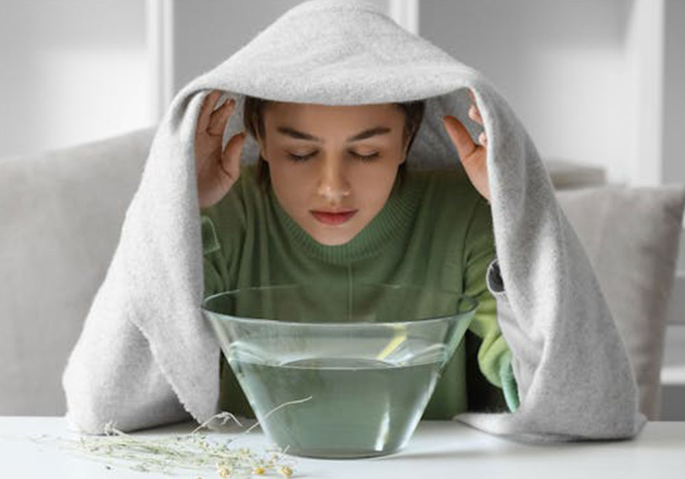 - Ингаляции: один из классических способов. Несколько капель эфирного масла добавляют в горячую воду и вдыхают пар, накрыв голову полотенцем. Особенно подходят масла эвкалипта, перечной мяты и горной сосны.