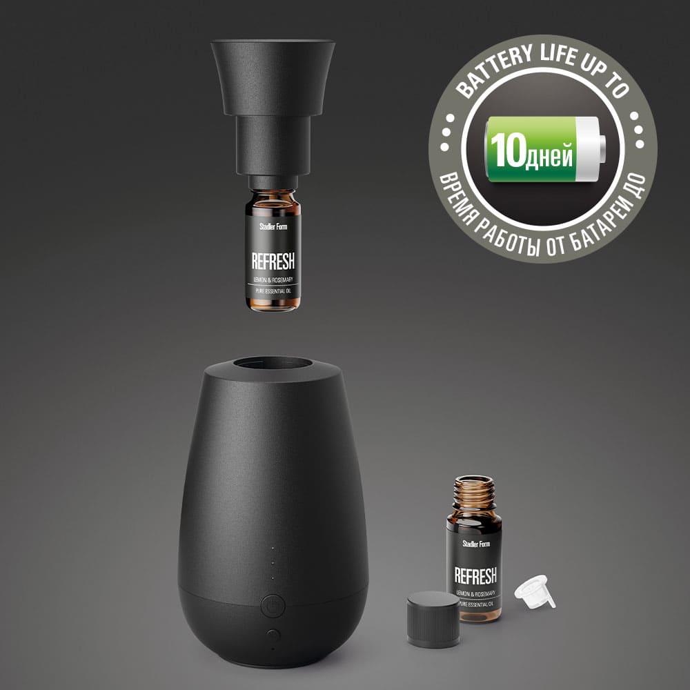 Если вы хотите позаботиться о Ella, то это очень просто. Хотя она и неприхотлива в вопросах эфирных масел и работает с любыми их видами (без содержания алкоголя), некоторые предпочтения у нее есть. Конечно же, Ella обожает масла из своей семьи Stadler Form, что вполне понятно: коллекция фирменных ароматов Stadler Form – это результат работы профессиональных парфюмеров.