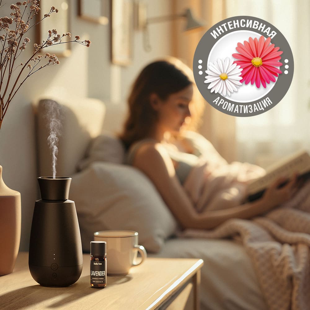 Ella работает бесшумно, создавая спокойную атмосферу и мягкое свечение. Она не отвлекает — лишь наполняет пространство ароматом и светом уюта.