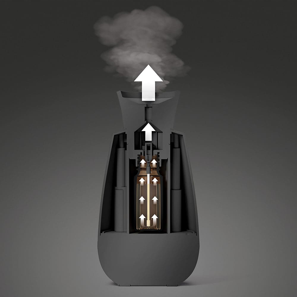 Благодаря системе распыления ароматов Ella эфирные масла распыляются непосредственно в воздух мелкими каплями без использования воды. Кратковременное распыление сопровождается лёгким жужжанием.