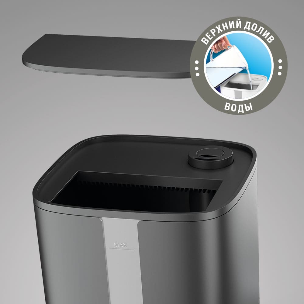 Вы можете доливать воду с кувшином или бутылкой, не останавливая прибор. Удобство верхнего залива экономит время и сохраняет чистоту. Пока вы отдыхаете или работаете, Oliver продолжает заботиться о вашем воздухе. Идеальная влажность поддерживается автоматически — без усилий и хлопот. Комфорт начинается с простых решений.