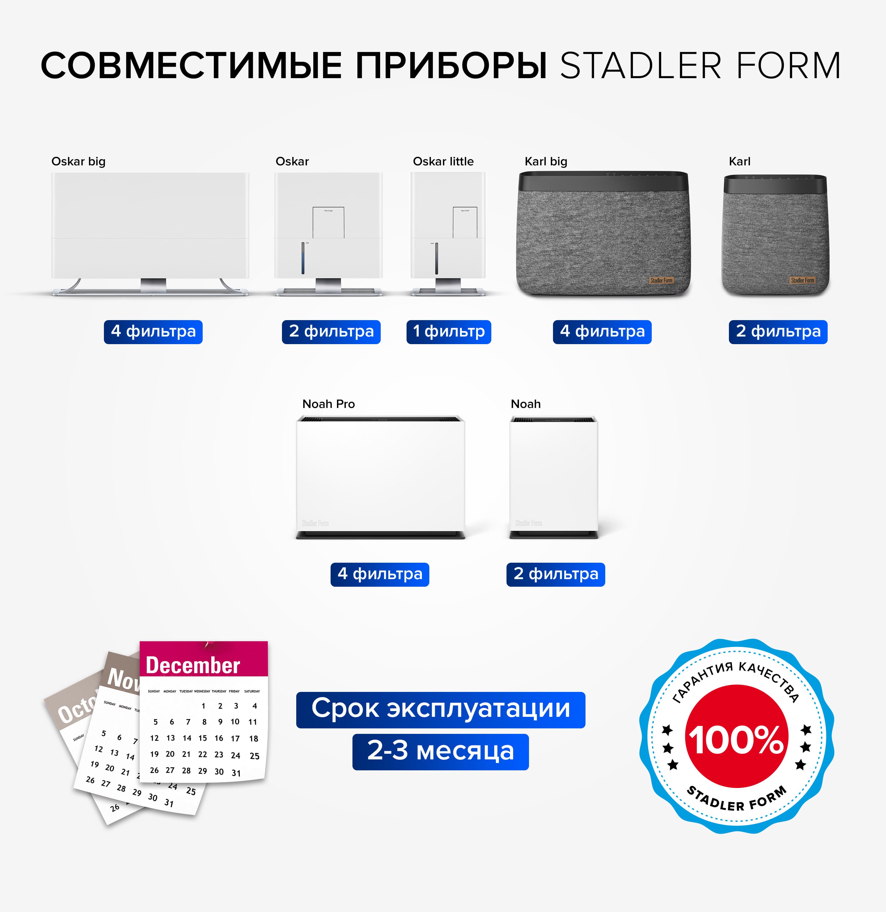 Рекомендуется менять фильтры каждые 2–3 месяца или в начале нового сезона для поддержания максимальной эффективности. Подходят для всех моделей семейств Oskar, Karl, Noah поэтому выбор всегда прост.