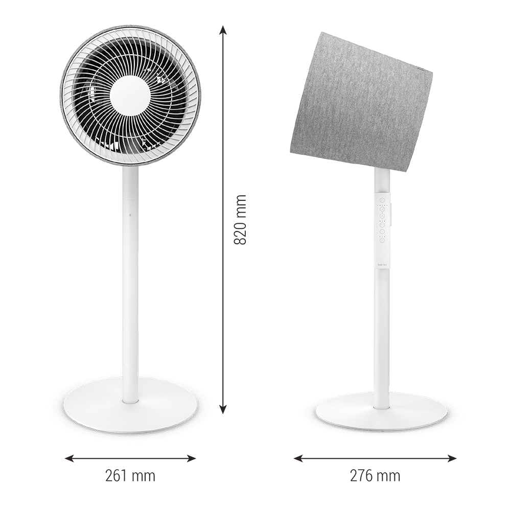 Simon максимально защищен от детского любопытства: его лопасти надежно скрыты в корпусе. Устойчивая ножка не позволит Simon перевернуться от несильного толчка.