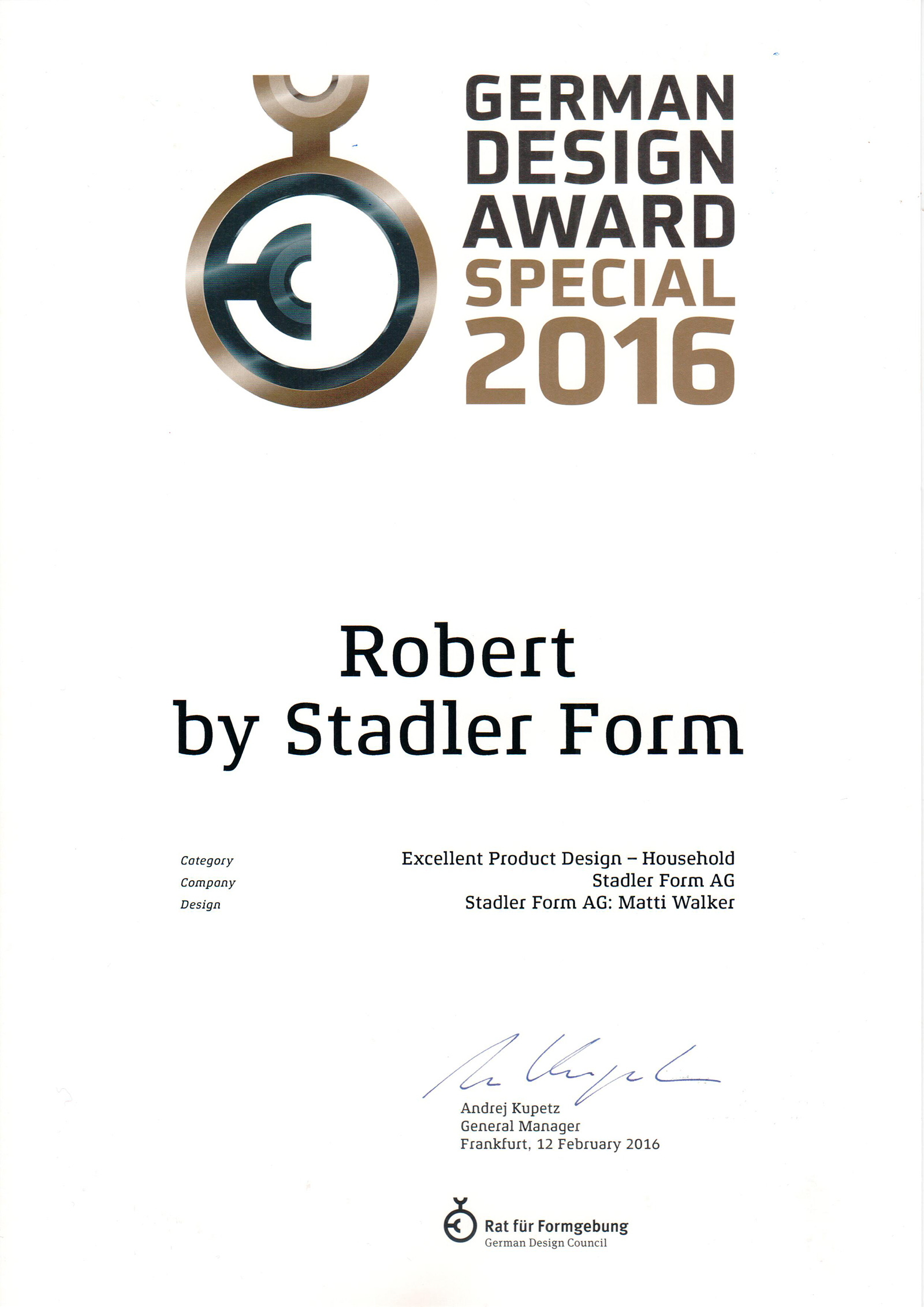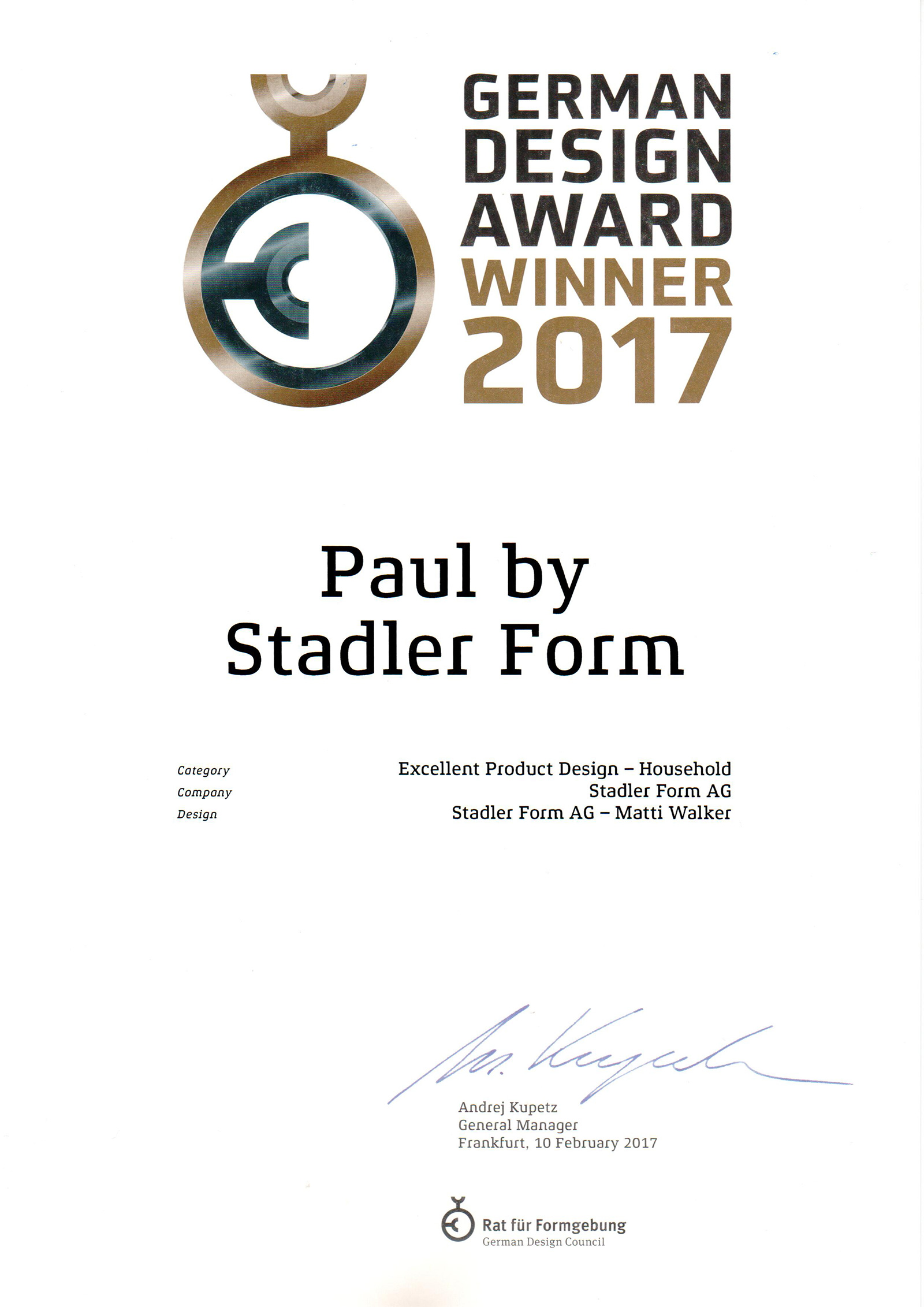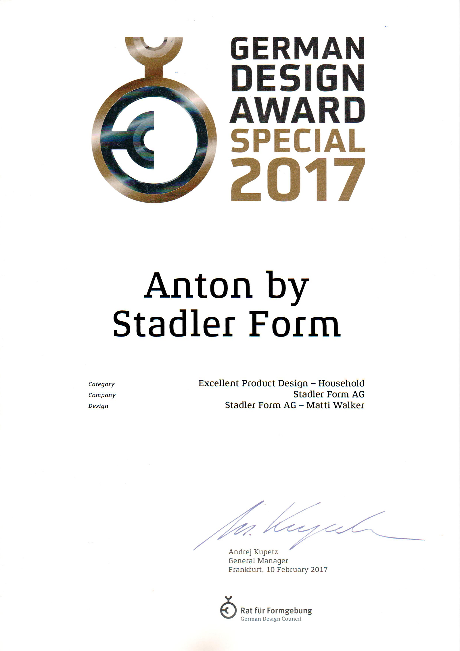 В копилке наград Stadler Form уже присутствуют: