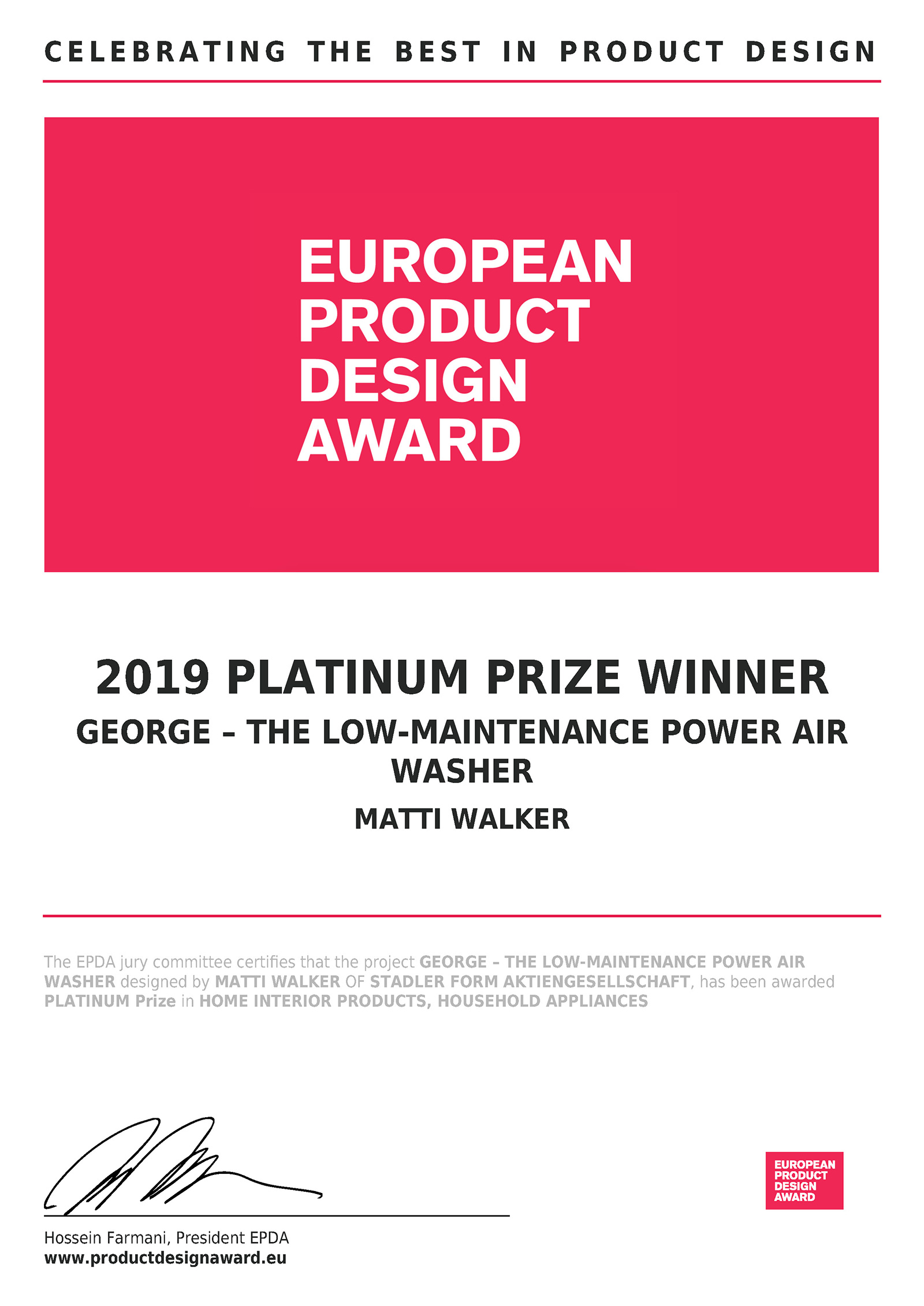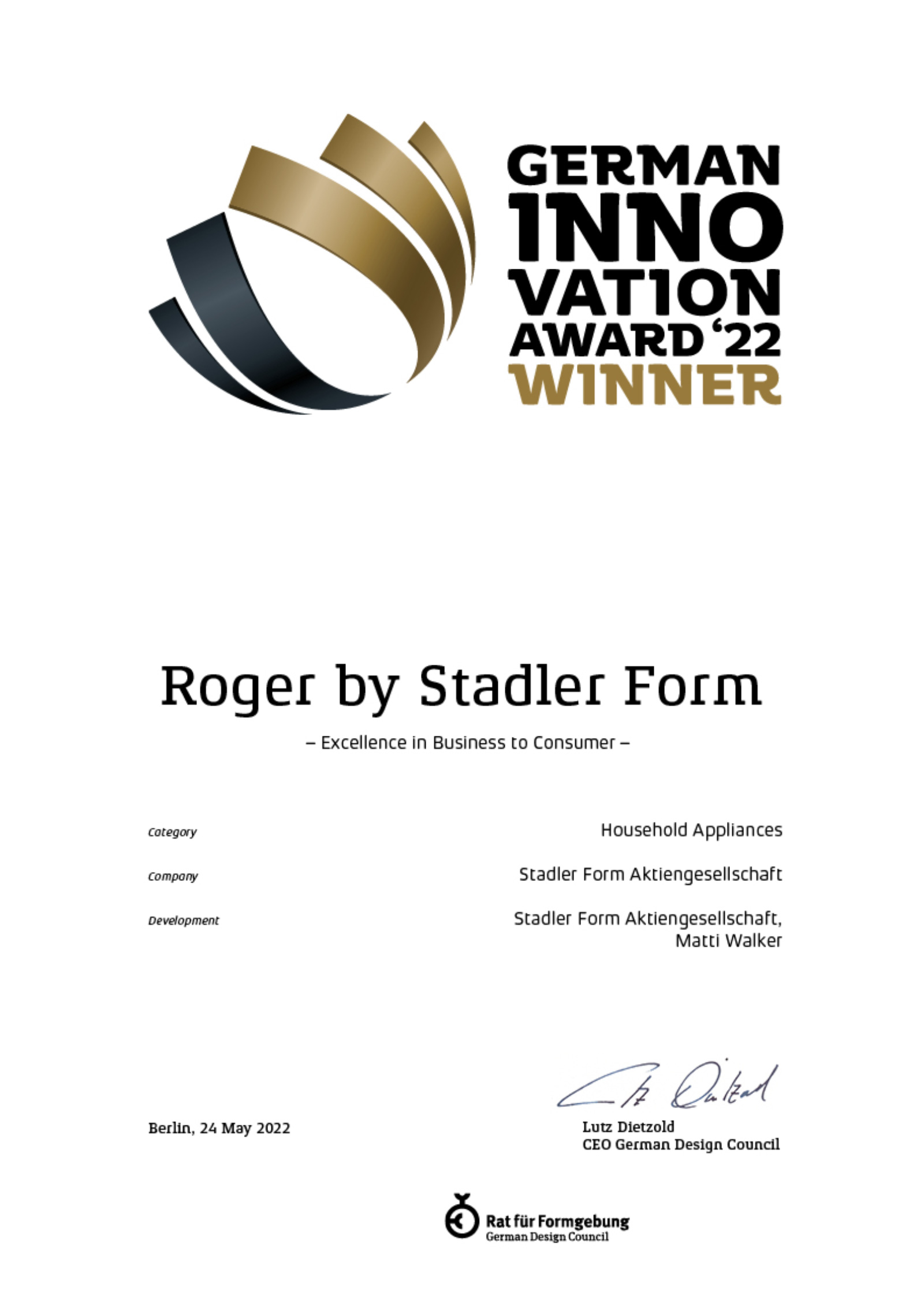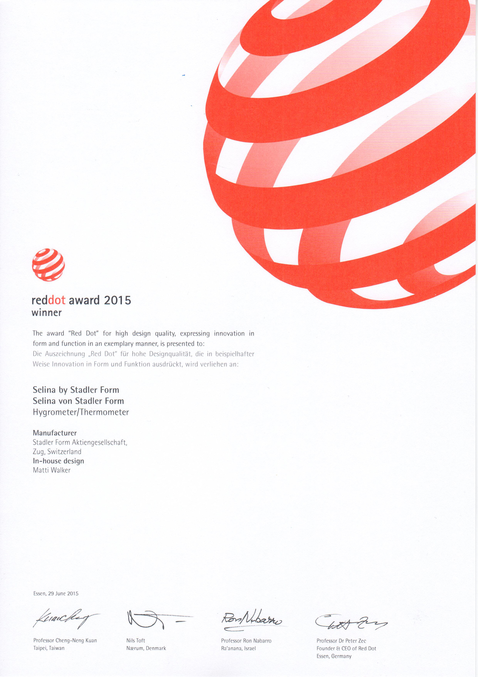 В копилке наград Stadler Form уже присутствуют: