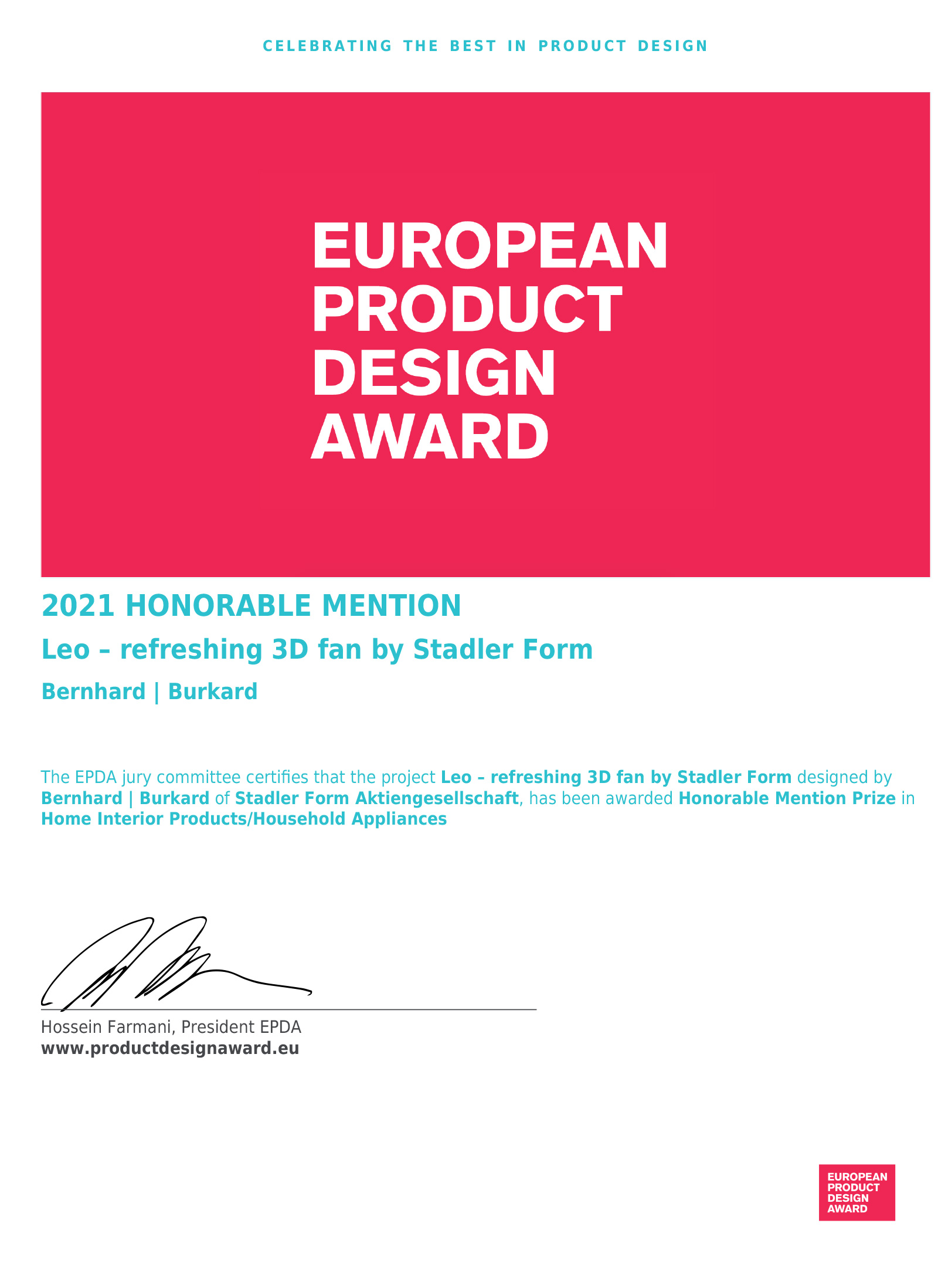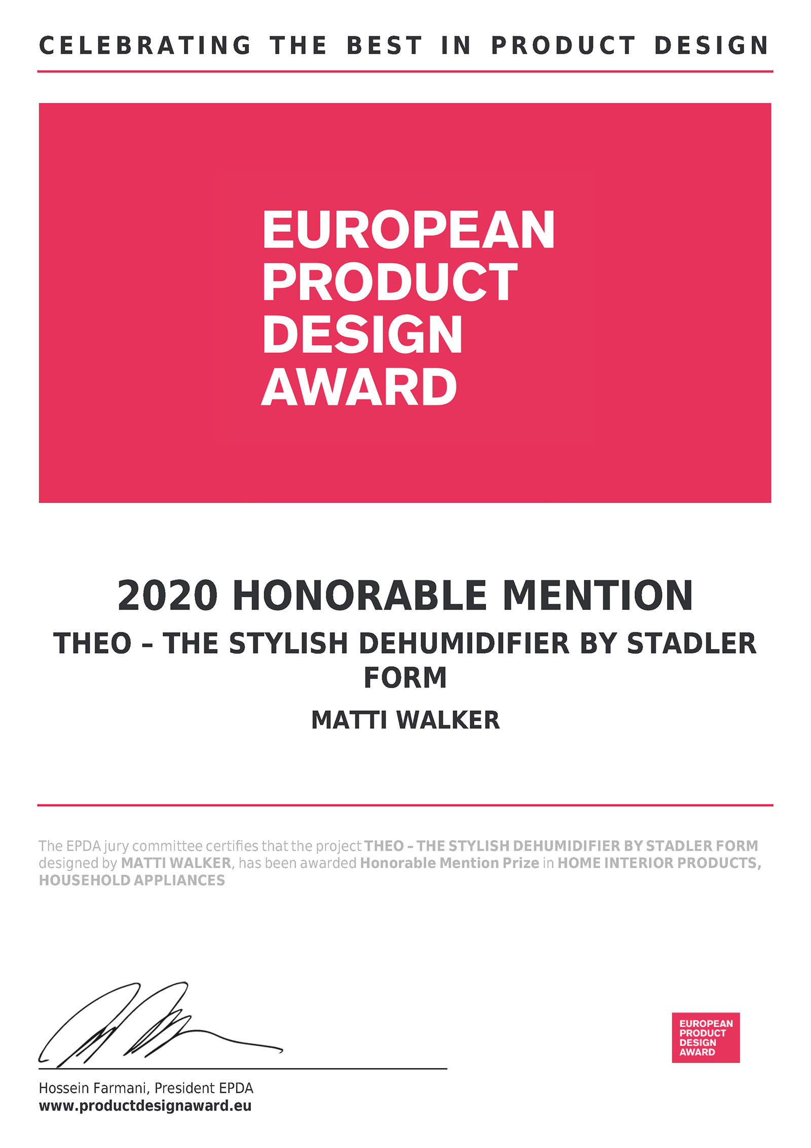 The German Design Award — это международная премия при Немецком Совете по дизайну. Награды присуждаются продуктам с высококлассным и уникальным дизайном, кардинально меняющим «ландшафт» этого искусства. Просто номинация на эту премию уже является знаком безупречного профессионализма и созидательного качества.
