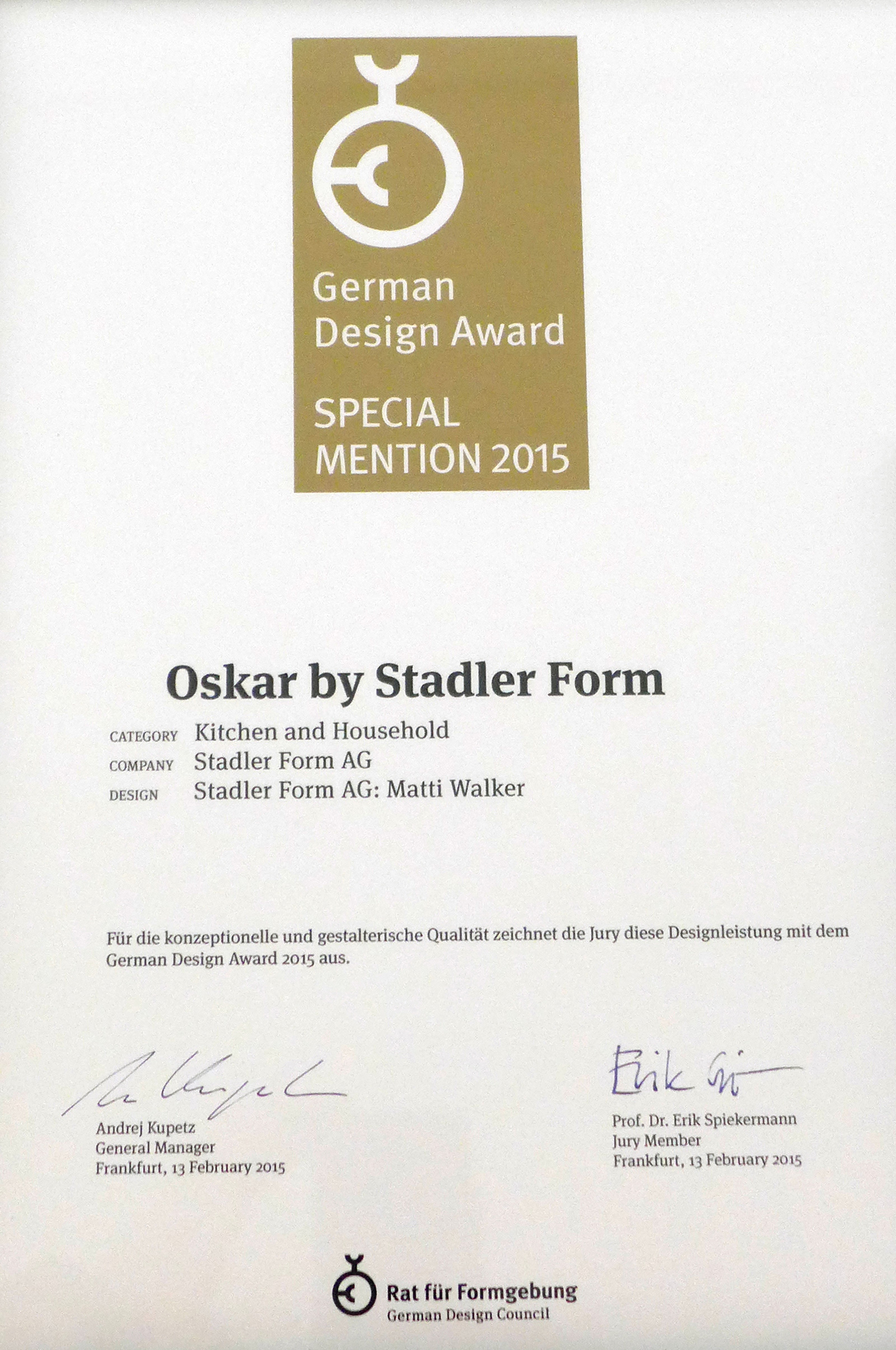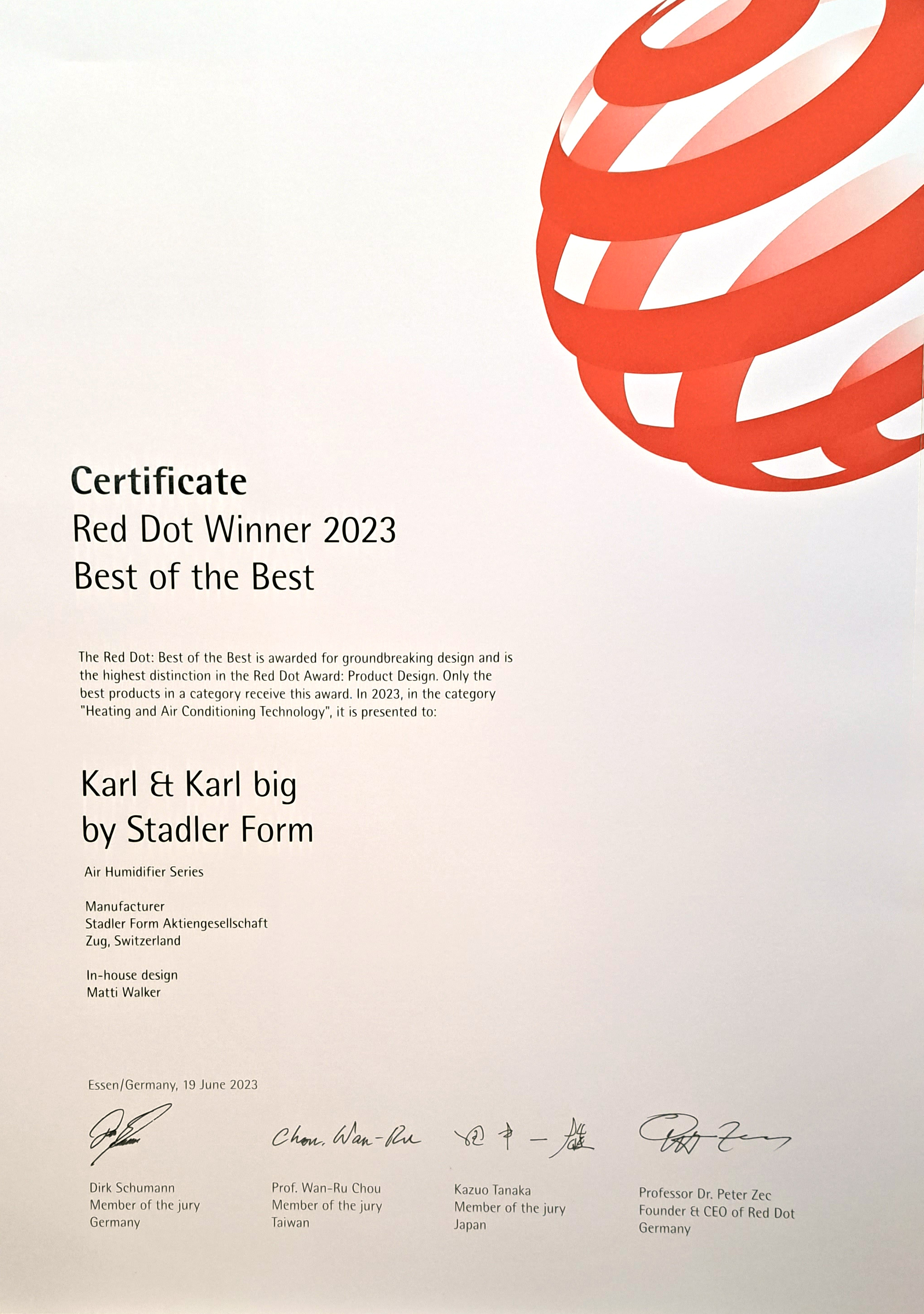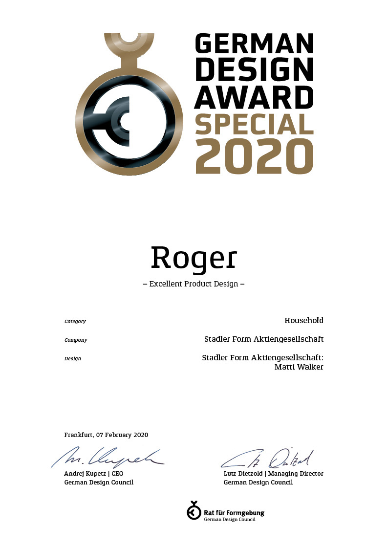 Продукты Stadler Form регулярно получают награды за качество дизайна, то есть за талантливое сочетание эстетики, функциональности, удобства использования и экологичности.
