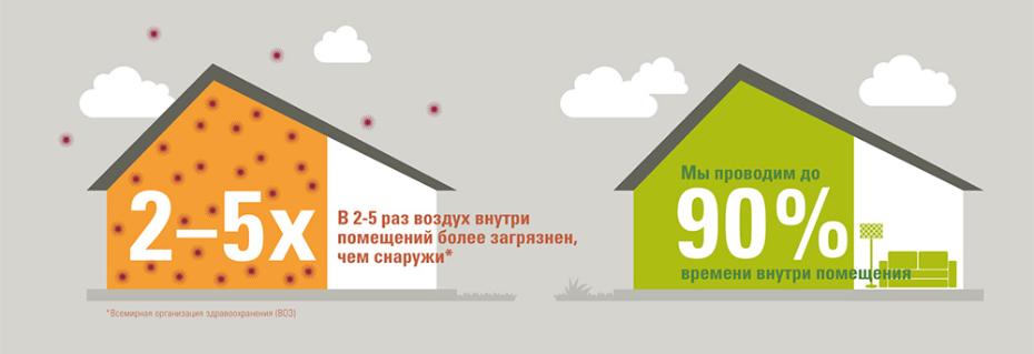 Мы проводим до 90% нашего времени в помещении. По данным Всемирной организации здравоохранения (ВОЗ), воздух внутри помещений в 2–5 раз более загрязнен, чем на улице. ВОЗ также заявляет, что в 2014 году примерно 92% населения мира проживало в регионах, где был превышен контрольный уровень загрязнения.
