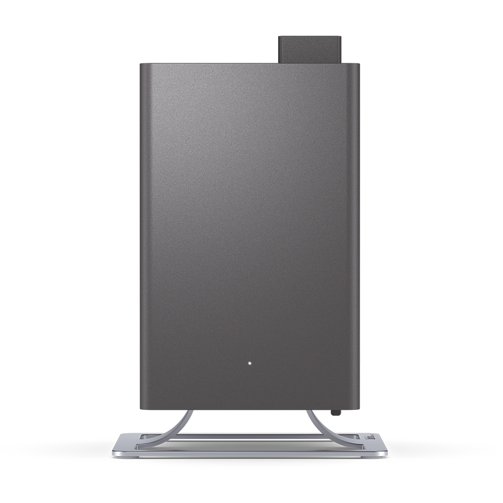 Наш George очищает воздух в детской от пыли, увлажняет его и поддерживает влажность на заданном уровне. Опытным путем выяснили, что для нашего аллергика идеальное значение 45-50%. Ниже — пересыхает нос, выше — начинается кашель. Здорово, что George позволяет точно выставить значение с шагом 5%, а не просто «больше-меньше».