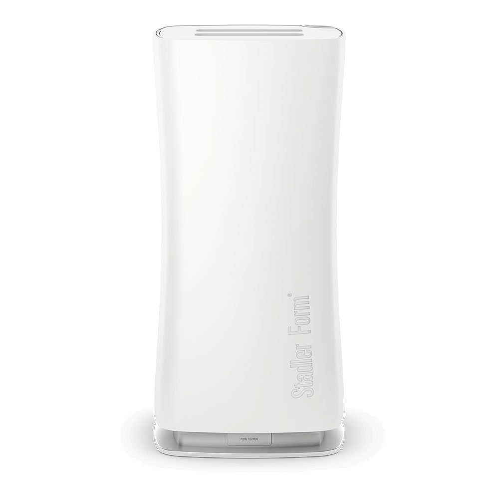 Внешний вид увлажнителя воздуха Stadler Form Eva – это еще одно творение команды швейцарских дизайнеров Stadler Form. Как всегда лаконичная форма разбавлена женственным изгибом, а технологичный шик создается маленьким цифровым дисплеем (отображается текущая влажность). Стройность фигуры подчеркнута вертикальной полоской фирменного голубого цвета, отражающей уровень воды в резервуаре.