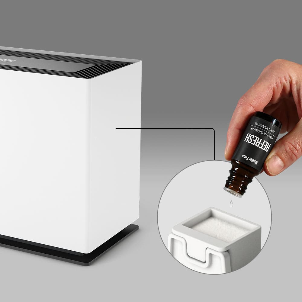 Noah Pro поддерживает использование эфирных масел — добавьте несколько капель в ароматический контейнер. Прибор наполняет комнату не только влагой, но и приятным ароматом. Создайте атмосферу релакса, вдохновения или уюта в зависимости от настроения. Все масла Stadler Form полностью натуральные и безопасные для использования. Они не входят в комплект и приобретаются отдельно, чтобы вы могли выбрать свой аромат.