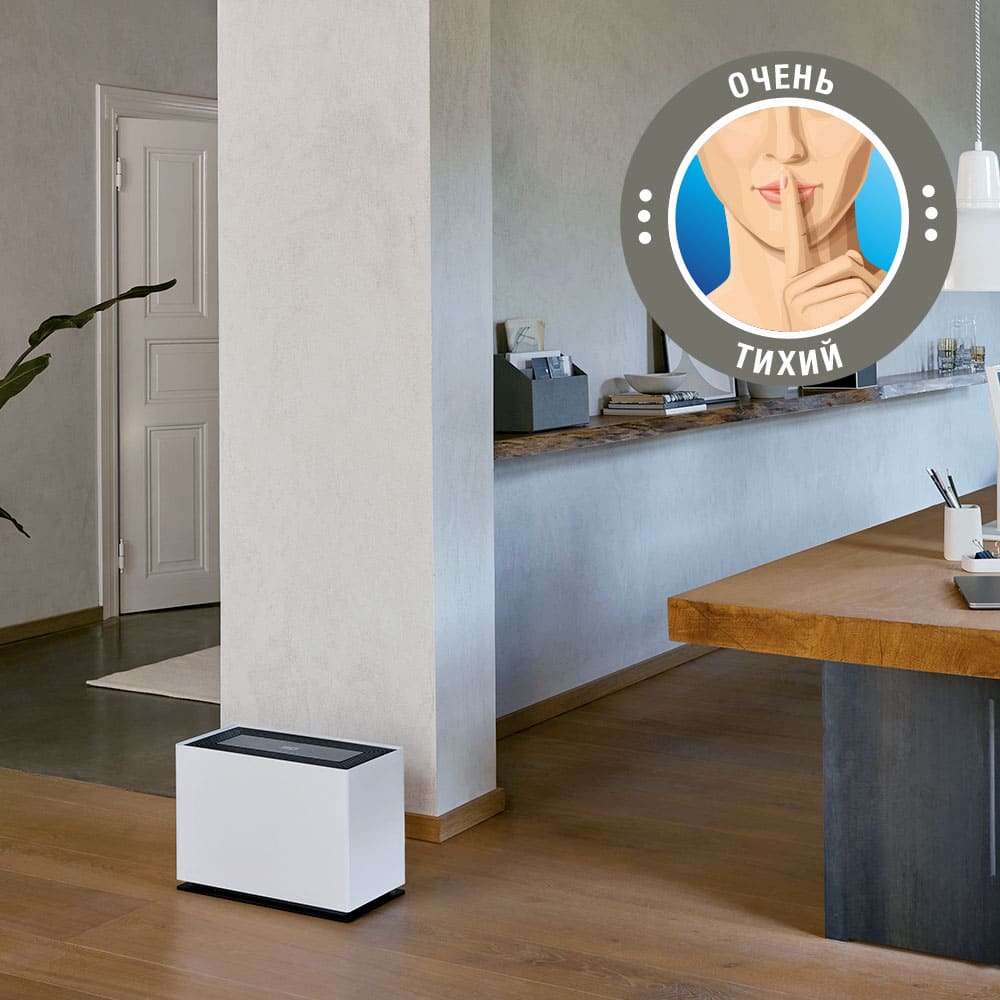 Никаких лишних звуков, только комфорт. Эта тишина — признак качества и продуманной инженерии. Пока вы отдыхаете или работаете, Noah Pro поддерживает идеальный баланс влажности. Тишина, в которой дышится легко.