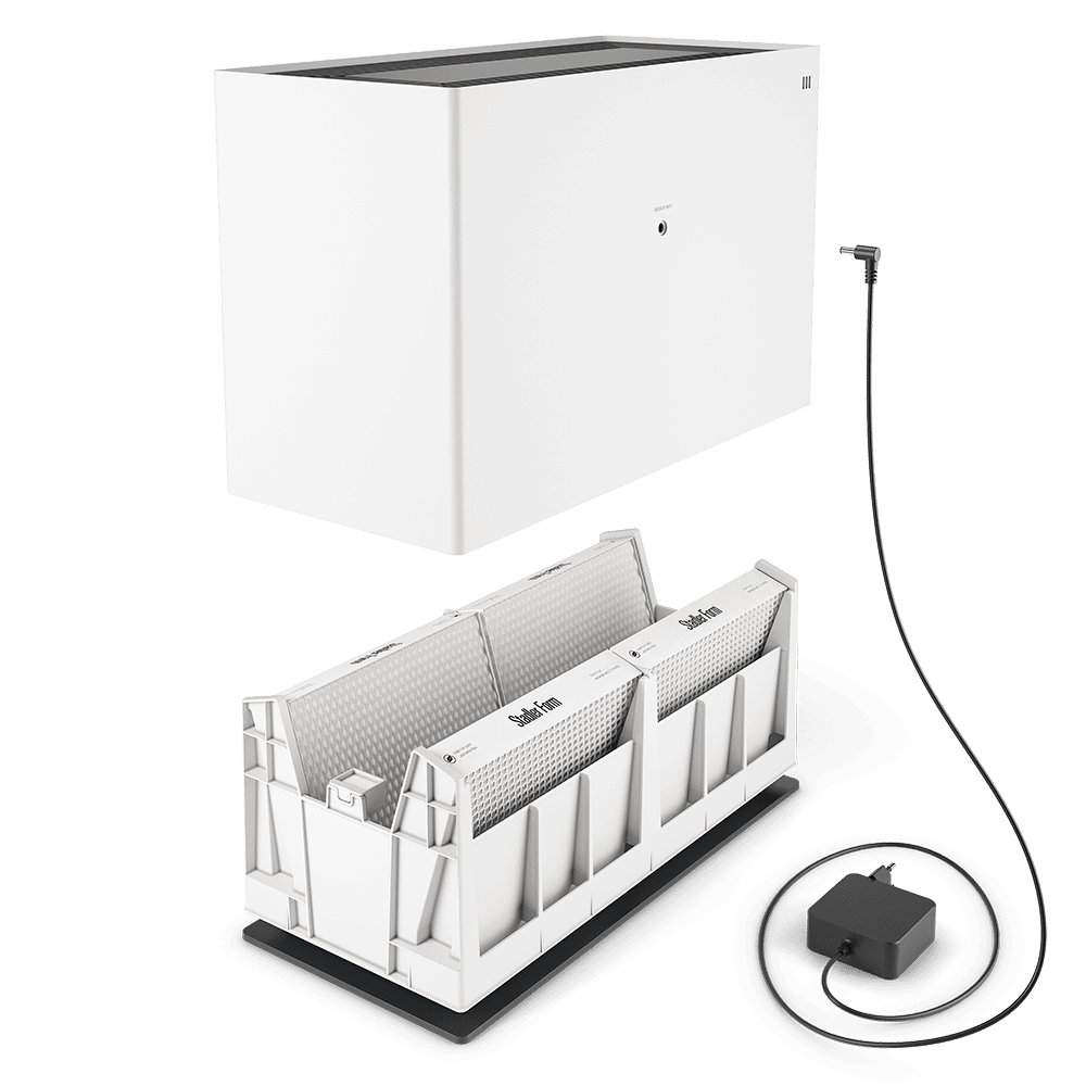 Уникальные фильтры Stadler Form не только насыщают воздух влагой, но и очищают его. Они улавливают частицы пыли, извести и загрязнений, пропуская только чистый поток. Воздух на выходе свежий, гигиеничный и безопасный для всей семьи. Благодаря естественному принципу испарения не образуется белого налёта на мебели. Фильтры легко заменяются и служат долго, сохраняя эффективность прибора.