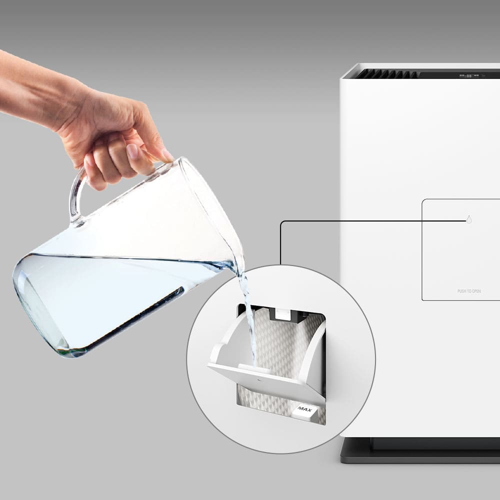 Просто откройте лючок, добавьте воду и Noah продолжит работать, не нарушая ритм вашего дня. Каждая деталь продумана для максимального удобства и чистоты использования. Никаких проливов, никаких лишних действий — только естественный комфорт. Noah заботится о влажности, пока вы заботитесь о себе.
