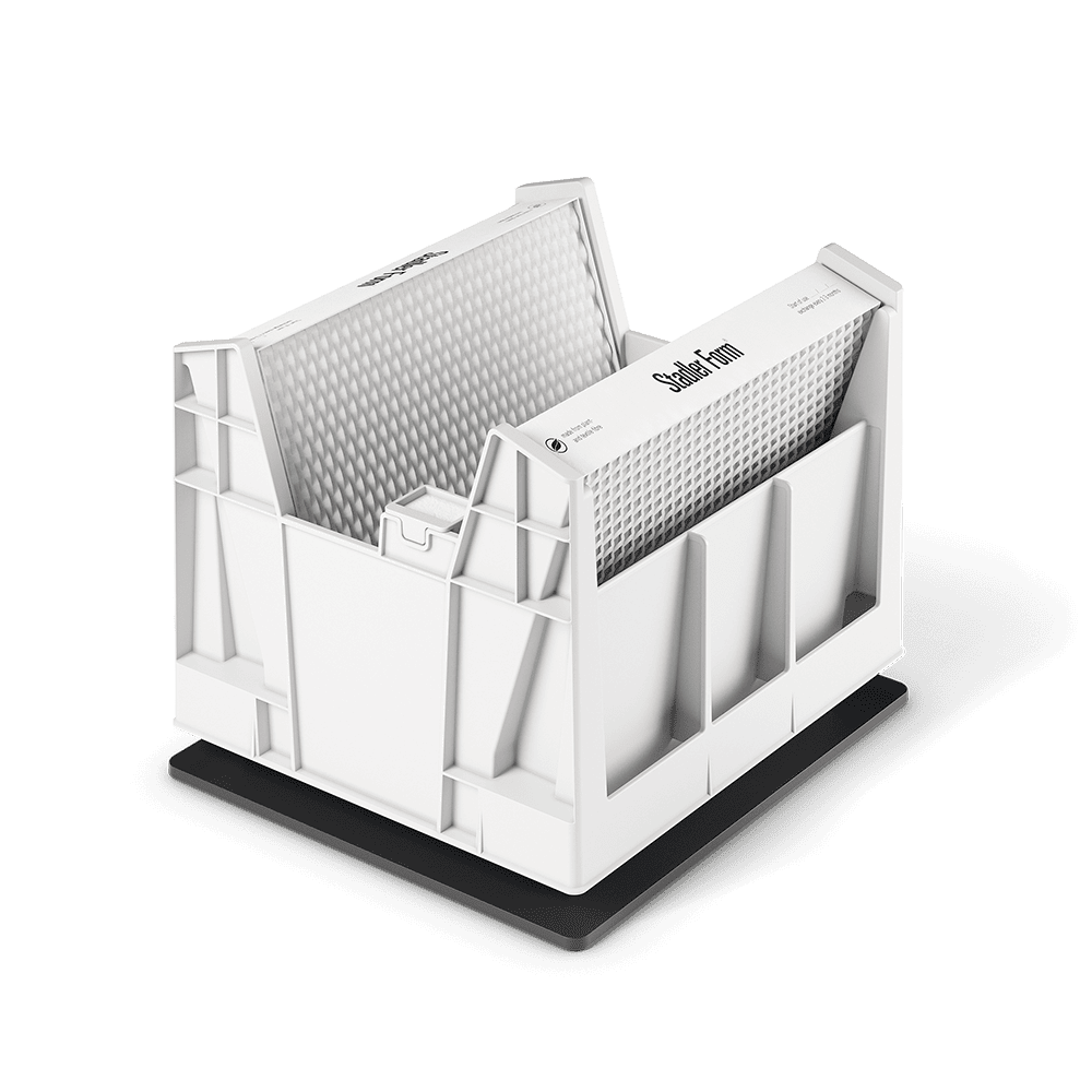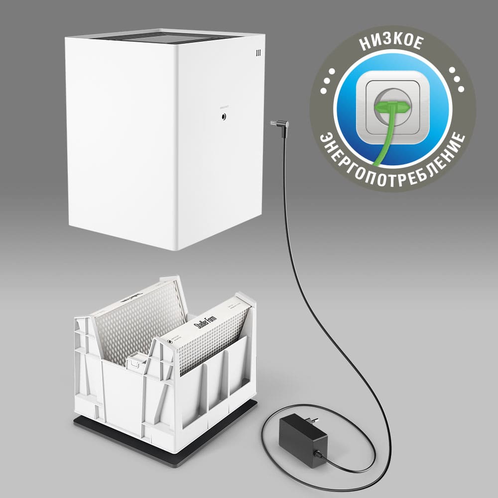 Фильтры Stadler Form делают больше, чем просто увлажняют. Они задерживают частицы пыли, извести и загрязнений, очищая воздух перед испарением. На выходе — только чистая, свежая влага, безопасная для всей семьи. Благодаря естественному принципу работы не образуется белый налёт на мебели.
