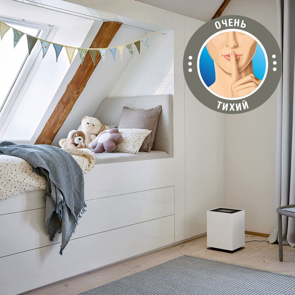 Даже при максимальной мощности Noah остаётся удивительно тихим — всего 27–62 дБ(А). Вы можете спать, работать или отдыхать, не замечая его присутствия. Никаких вибраций, шума или сквозняков — только лёгкое ощущение свежести. Это идеальный выбор для спальни, офиса или детской.