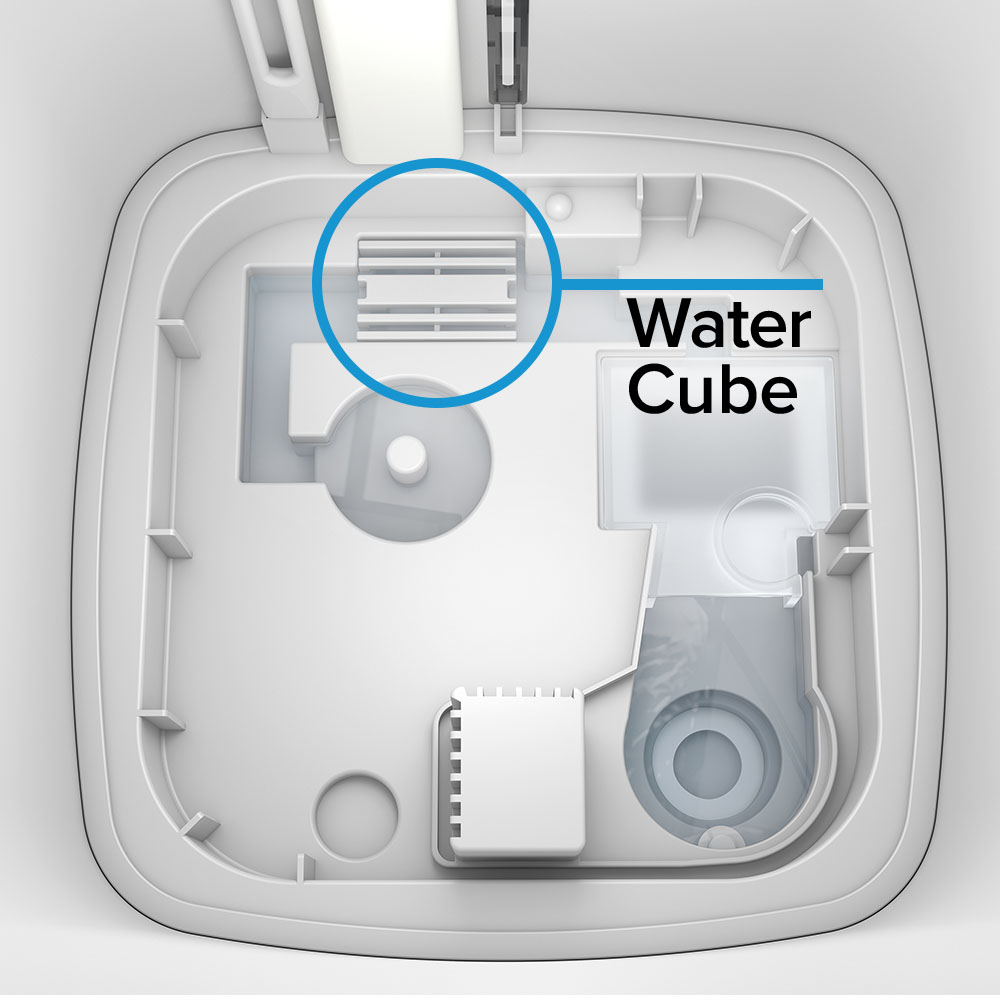 Water Cube™ не требует никакого ухода — он работает автоматически, пока в резервуаре есть вода. Картридж поддерживает чистоту внутри прибора на протяжении всего сезона, предотвращая появление бактерий и запахов. Его действие сохраняется до одного года, после чего рекомендуется замена для поддержания максимальной эффективности.