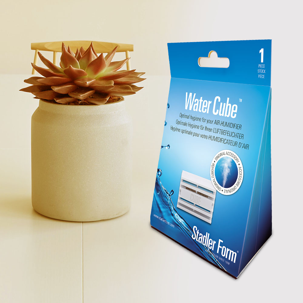 Установка занимает всего несколько секунд — просто положите Water Cube™ в резервуар, и он сразу начнёт работать. Подходит для большинства увлажнителей Stadler Form, обеспечивая гигиену без усилий. Никаких дополнительных процедур — только свежая вода и чистый воздух.